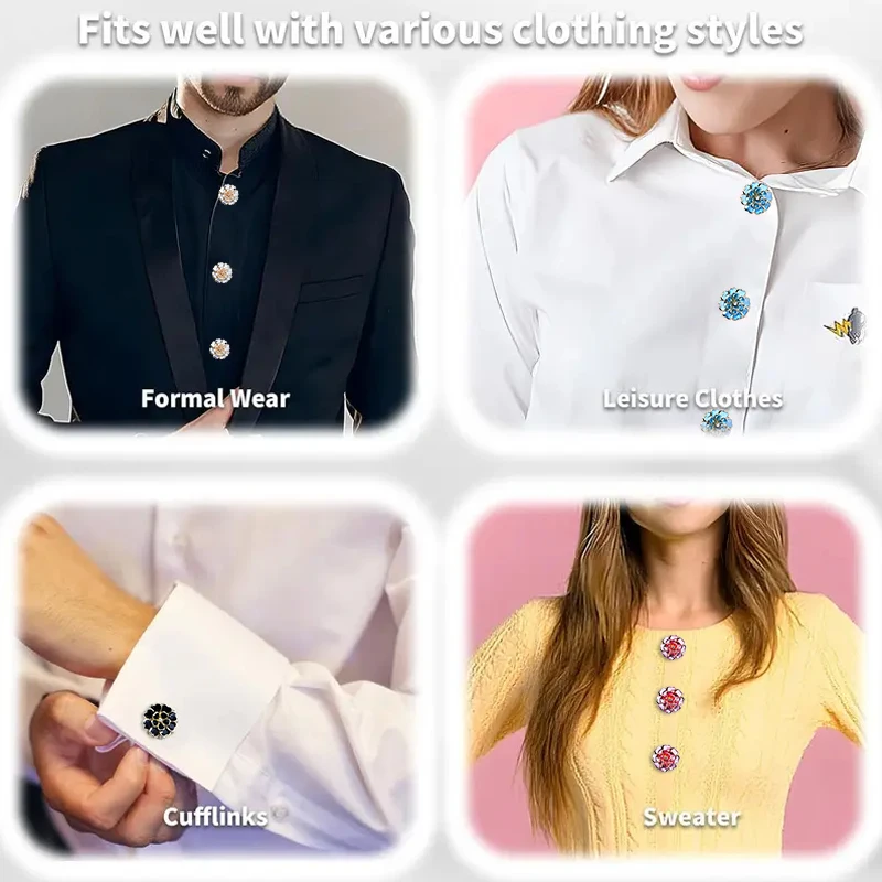 Romantic and effortlessly elegant, Bisous Flower is a charming decorative button cover inspired by soft floral beauty and timeless femininity. Featuring a delicate flower design with refined detailing, this accessory adds a graceful accent to shirts, blouses, dresses, and tailored garments. Its subtle yet expressive look brings warmth and sophistication to both everyday outfits and special occasions.