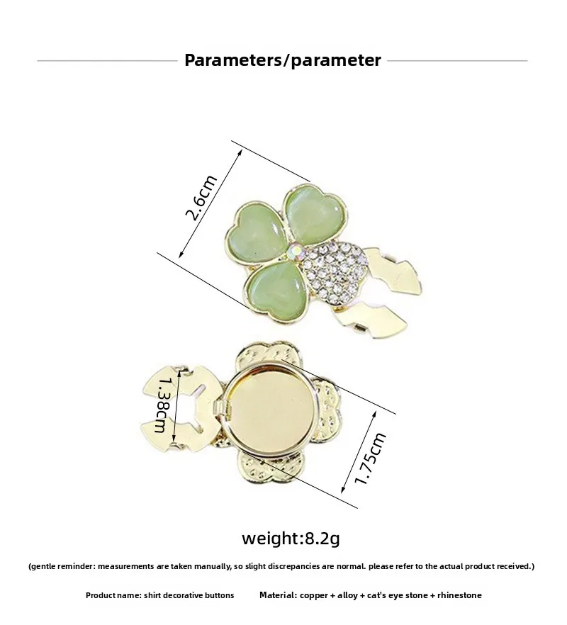 Add a touch of charm and luck to your outfits with our Clover Button — a stylish decorative accessory featuring a cat’s eye four-leaf clover design. This eye-catching button elevates shirts, collars, cuffs, bags, and DIY fashion projects with a unique blend of elegance and everyday versatility. Crafted for both casual and formal wear, it’s the perfect accent piece to refresh your look and express personal style.