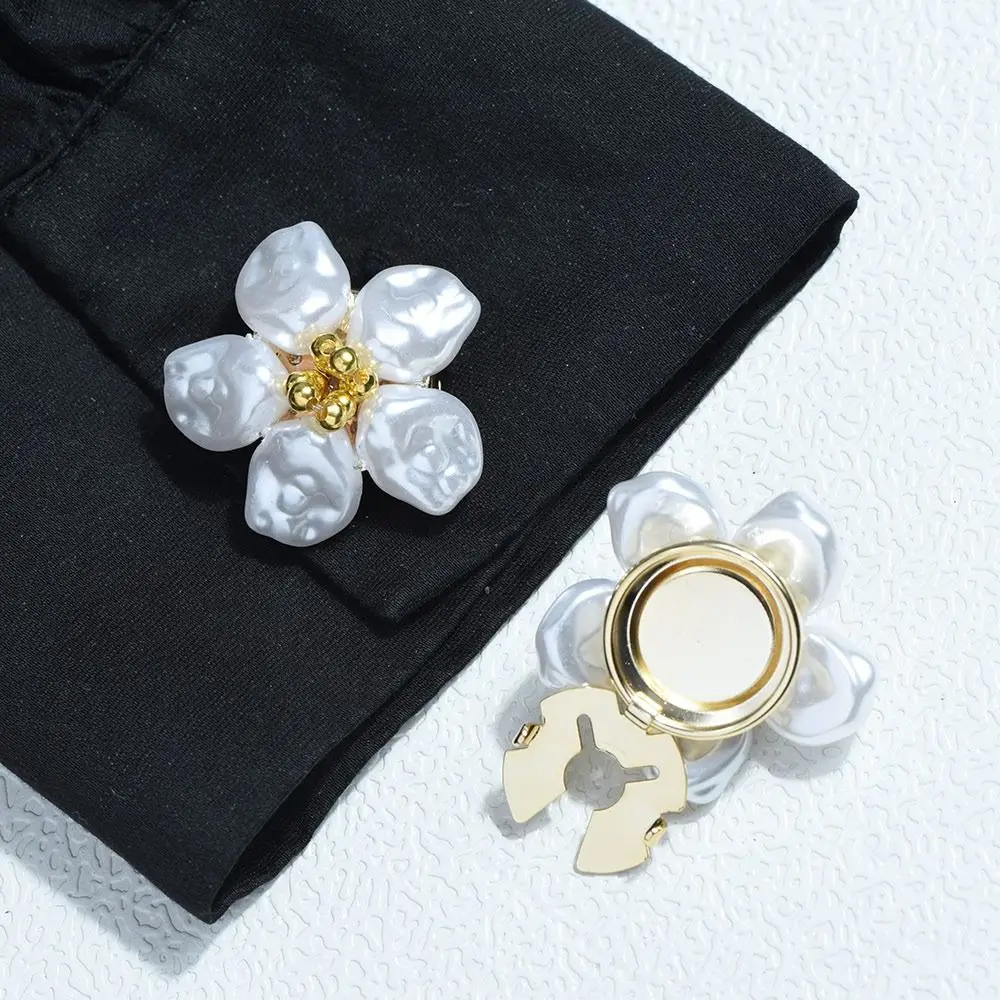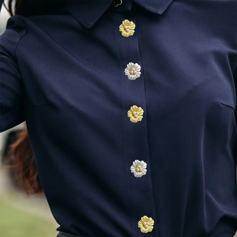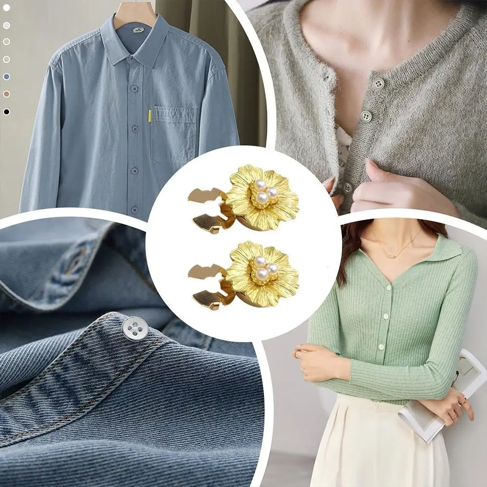 🌸 Elegant Floral Design – Beautiful flower-shaped button covers with radiant rhinestones and pearl-like detail for a stylish, refined look. Instant Outfit Upgrade – Clips easily over existing buttons to add a polished accent without tools or sewing.